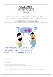 In fünf Factsheets wird Sexualaufklärung aus dem Blickwinkel jedes einzelnen der fünf Handlungsfelder der Definition von sexueller Gesundheit der Eidgenössischen Kommission für sexuelle Gesundheit (EKSG) beleuchtet. Sie enthalten aktuelle Zahlen und Hinweise zum gesetzlichen Rahmen, die den Beitrag von Sexualaufklärung bezogen auf jedes Handlungsfeld beleuchten. Für jedes Handlungsfeld werden auch Empfehlungen zur Förderung der ganzheitlichen Sexualaufklärung formuliert.